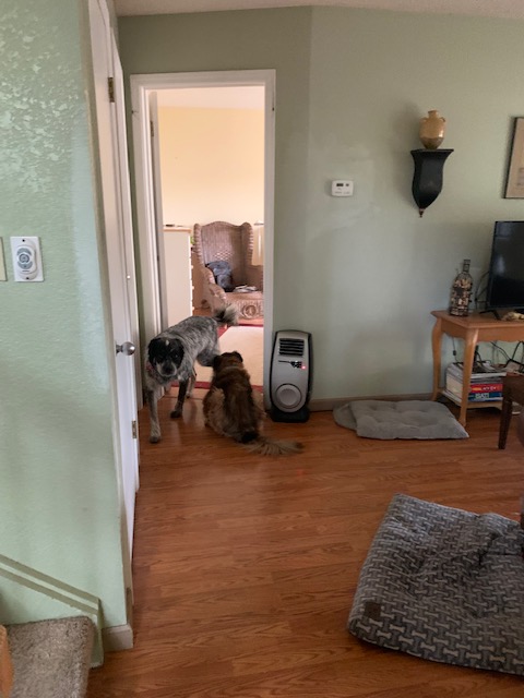 I’m letting go of some of the piles but I won’t let go of all of them. Not the piles that remind me of the best birthday presents and Chanukah presents and kwanza presents and Christmas presents that are my precious bundles, my heart and soul. Not the carefully packaged dog treats ready to go in case we have to evacuate, because fire season isn’t over yet and the dogs will want their cookies.. Not the hope that this time next year, both dogs will still be clattering into my mother’s bedroom and I will still hear her say, “NO more cookies.”